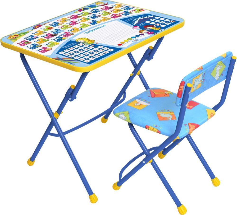 Комплект мебели выполнен из экологически чистых материалов. Углы столешницы и сиденья сглажены, на ножках одеты пластиковые наконечники. На ламинированной поверхности стола можно рисовать маркерами на водной основе.