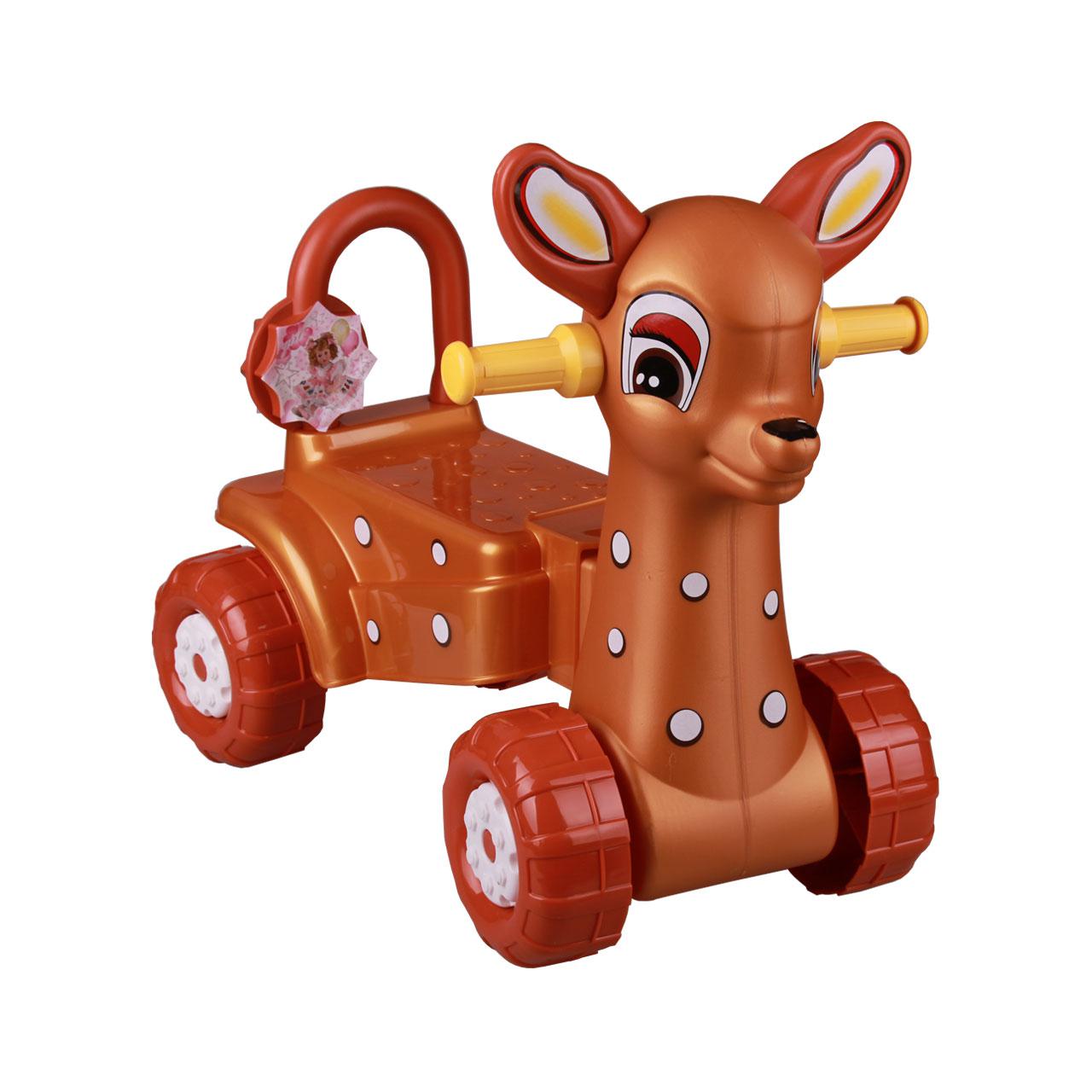 Яркая каталка для малыша в виде забавного животного выполнена из высокопрочного пластика. Имеет устойчивую конструкцию, является безопасной и простой в использовании. Её можно приобретать практически с того момента, когда малыш научиться самостоятельно ходить. Ребенок катается сидя, отталкиваясь ножками от пола.