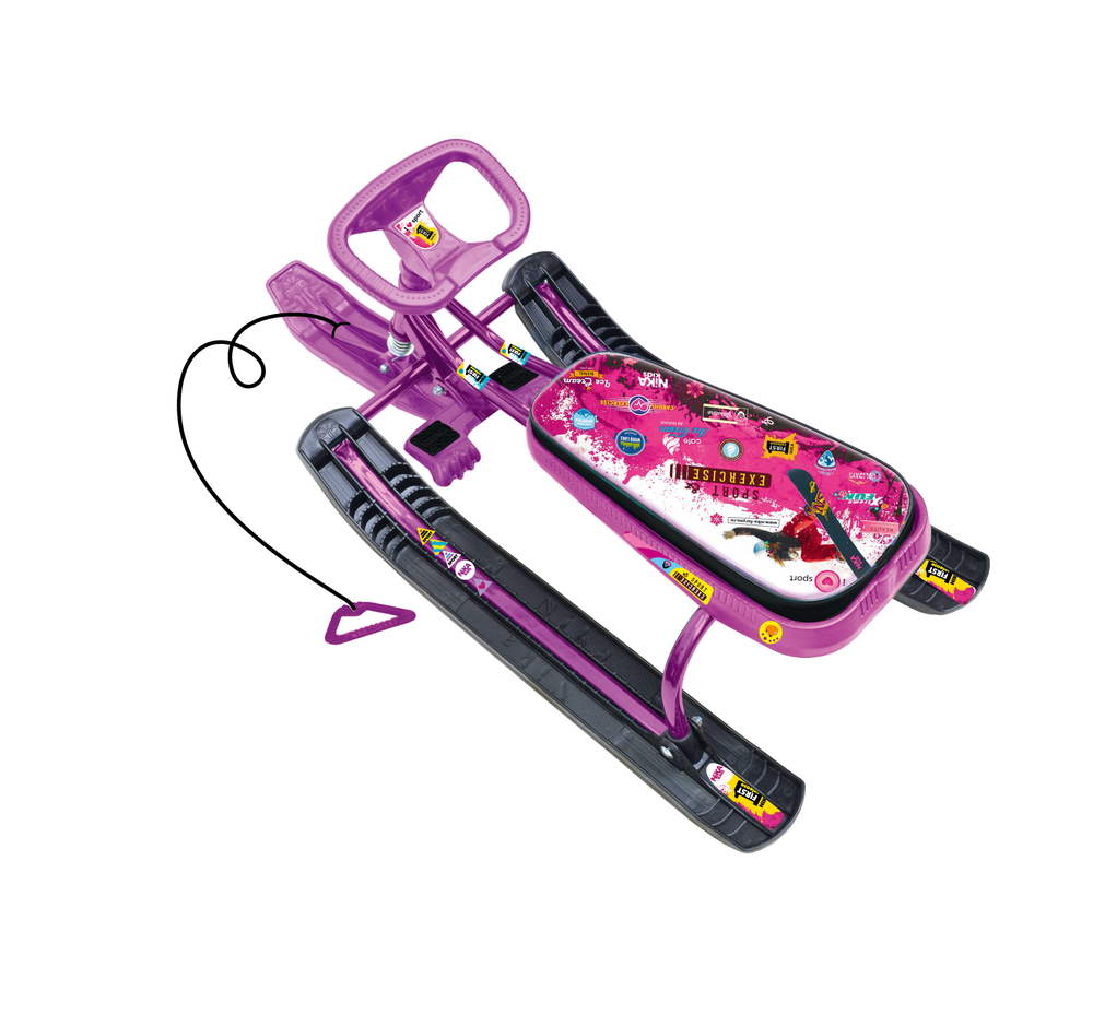 Каркас снегоката выполнен из стальных труб, мягкое, удобное сиденье с рисунком. Максимальная грузоподъёмность 100 кг. Усиленный тормоз эффективен на обледенелой поверхности. Комплект наклеек на снегокат в подарок.