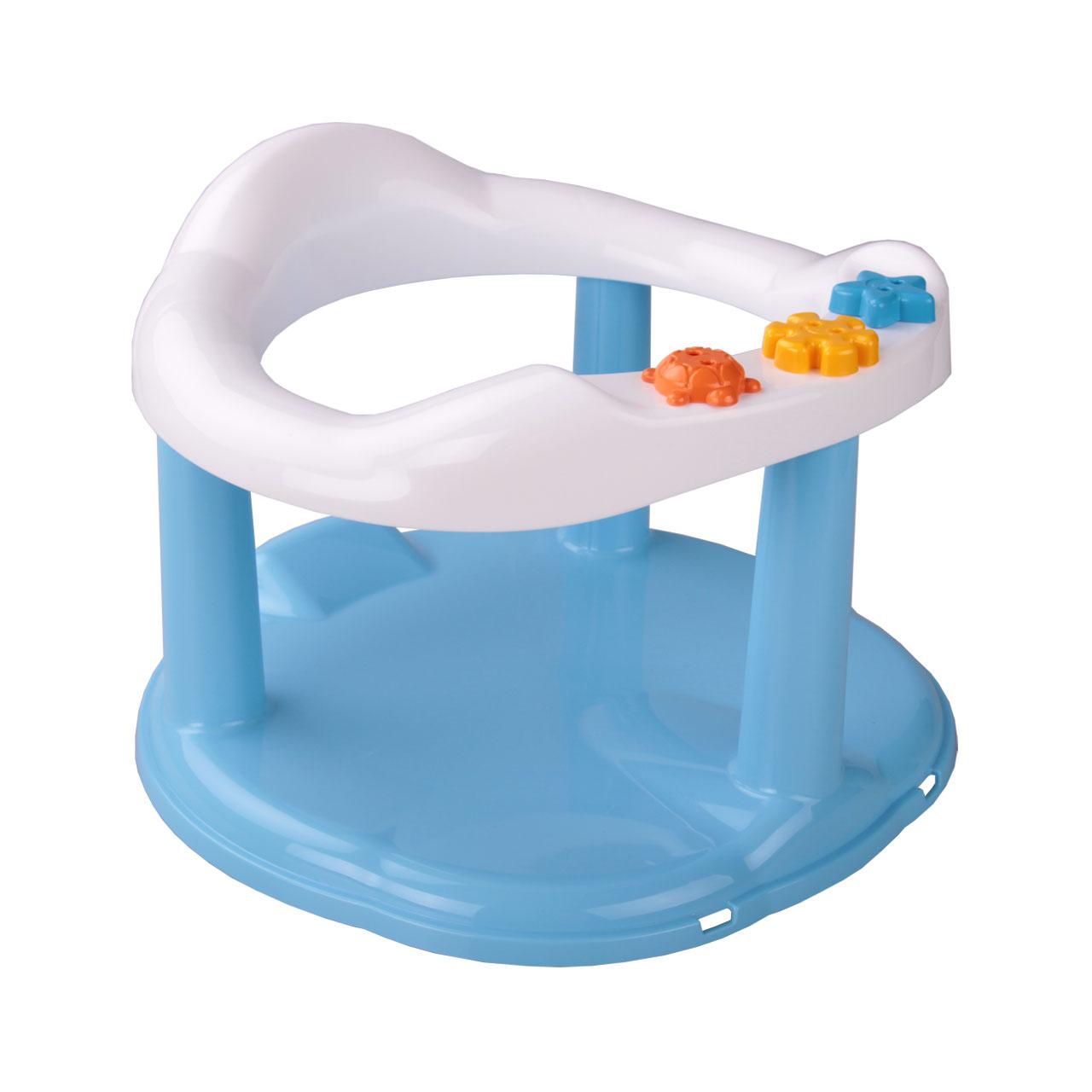 Сиденье для купания стационарно закрепляется присосками, специальные ограничители не дадут ребенку выскользнуть.